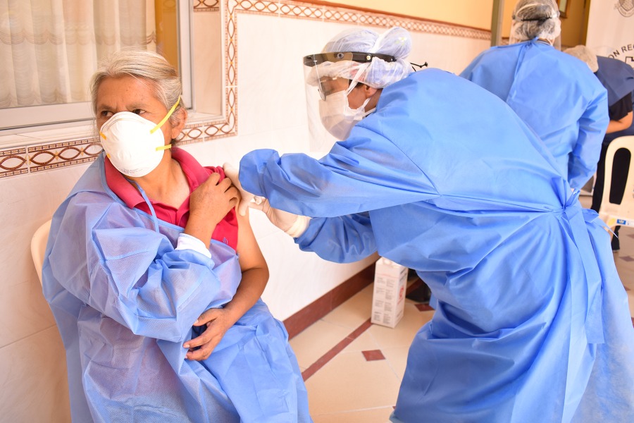 El proceso de vacunación se inició de manera simultánea en 09 residencias de adultos mayores como el "Hogar Desamparados", "Hospicio San Antonio", "Casa de Reposo Divino Jesús", "Residencia Madre Caterina", "Casa Hogar Señor de Luren", entre otros. La primera adulta mayor en vacunarse en el Callao, fue doña Teodora Moreno Moreno de 95 años, quien alegremente recibió su primera dosis.